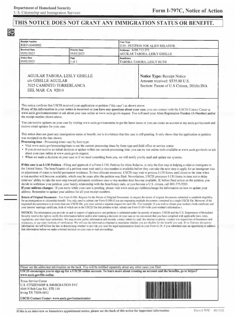 2023 05 01 Uscis Form I797c Notice LRT PDF