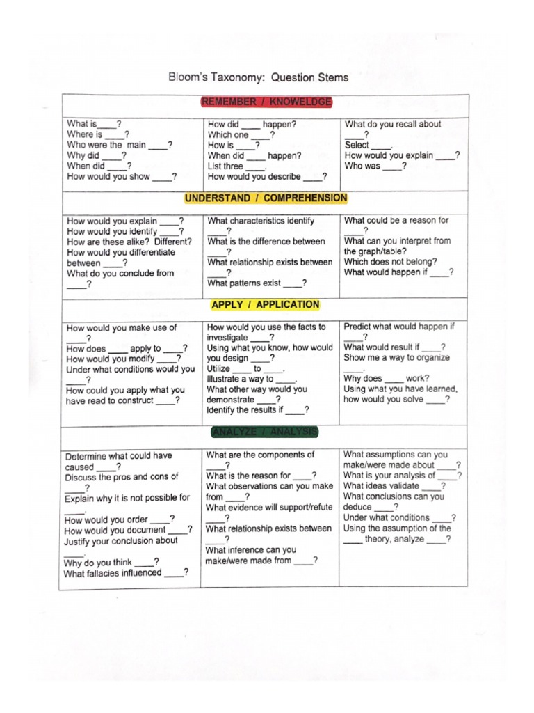 Bloom's Taxonomy Question Stems PDF