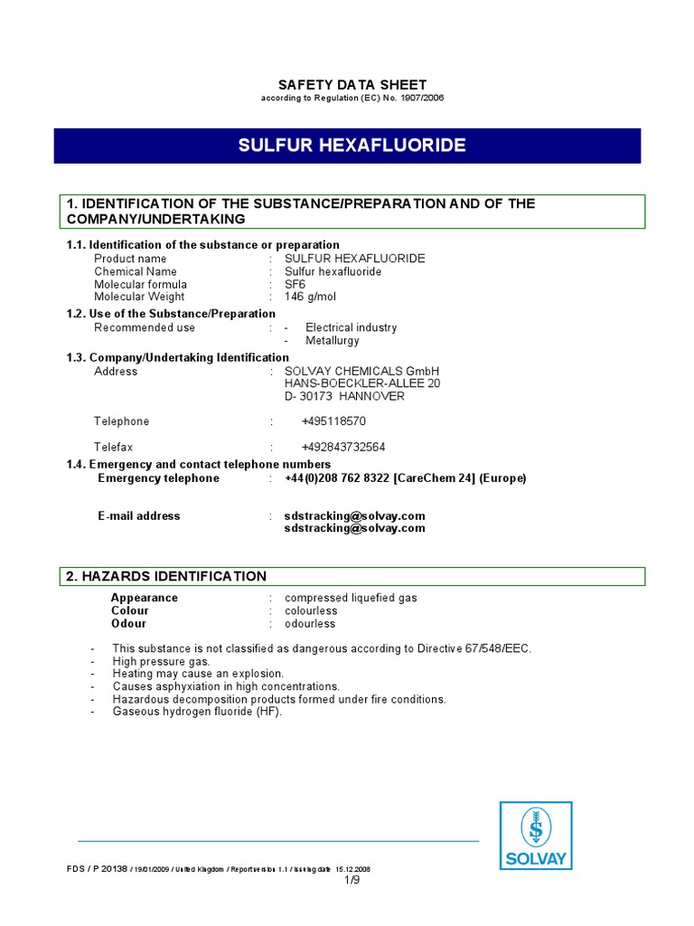 Sulfur Hexafluoride Safety Data Sheet PDF Safety Materials